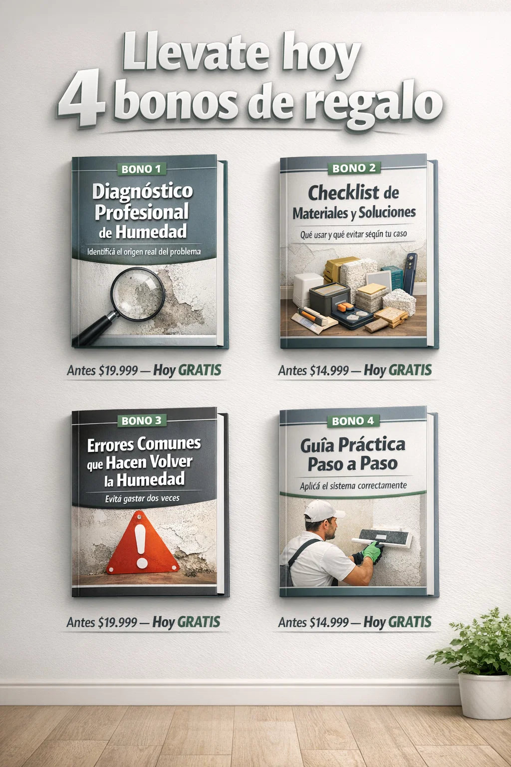 Accedés al contenido de forma inmediata después de la compra. En pocas horas ya podés entender el origen de la humedad y definir el plan correcto para tu caso, sin perder tiempo ni dinero.