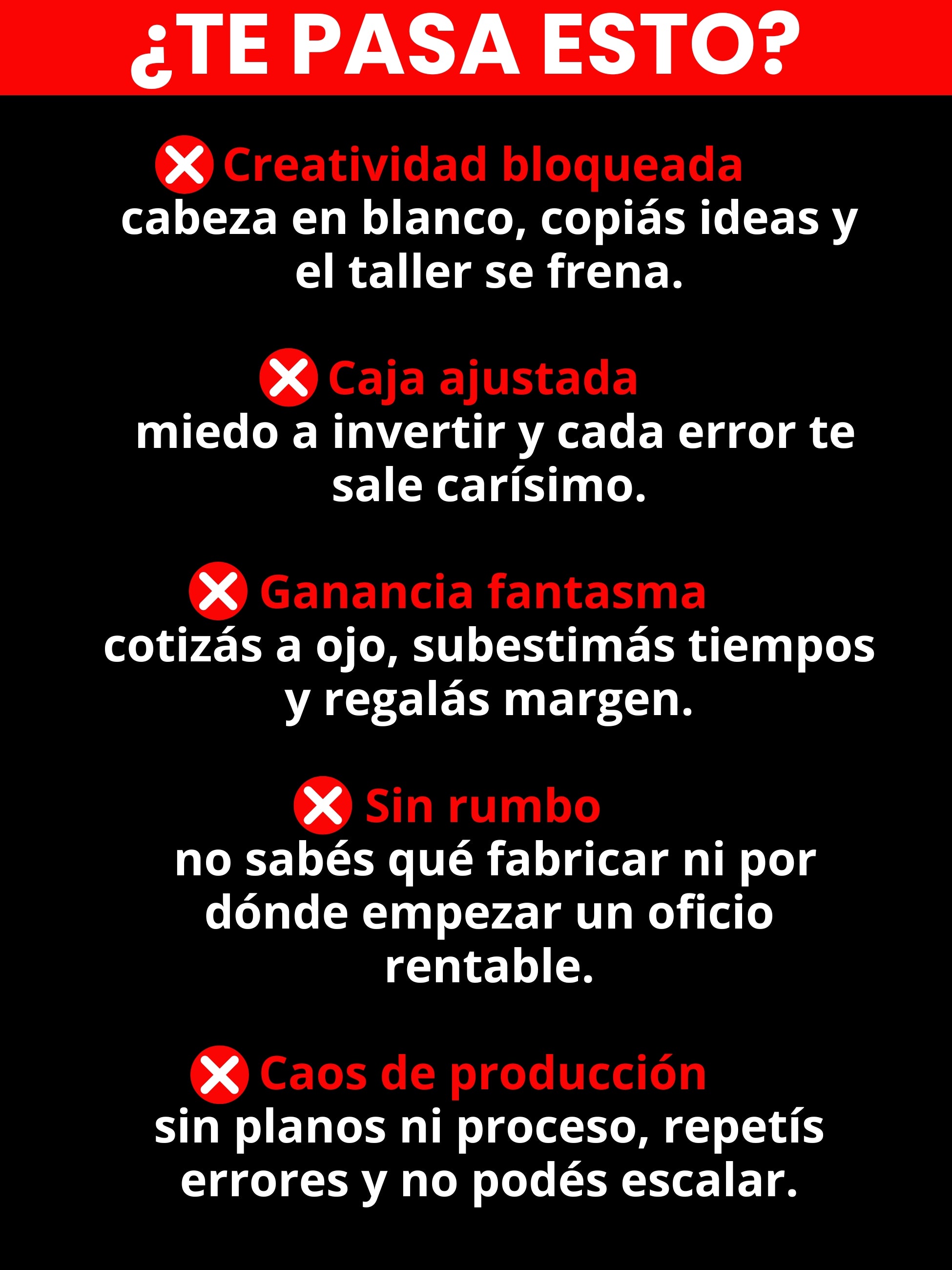Está pensado para sesiones cortas y con materiales optimizados. Usás listas de corte y pasos claros que evitan errores caros y te permiten recuperar la inversión más rápido.